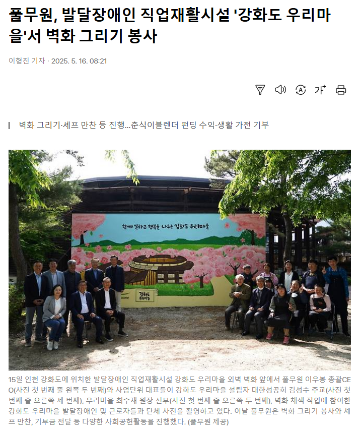 풀무원, 발달장애인 직업재활시설 '강화도 우리마을'서 벽화 그리기 봉사 - 파이낸셜뉴스