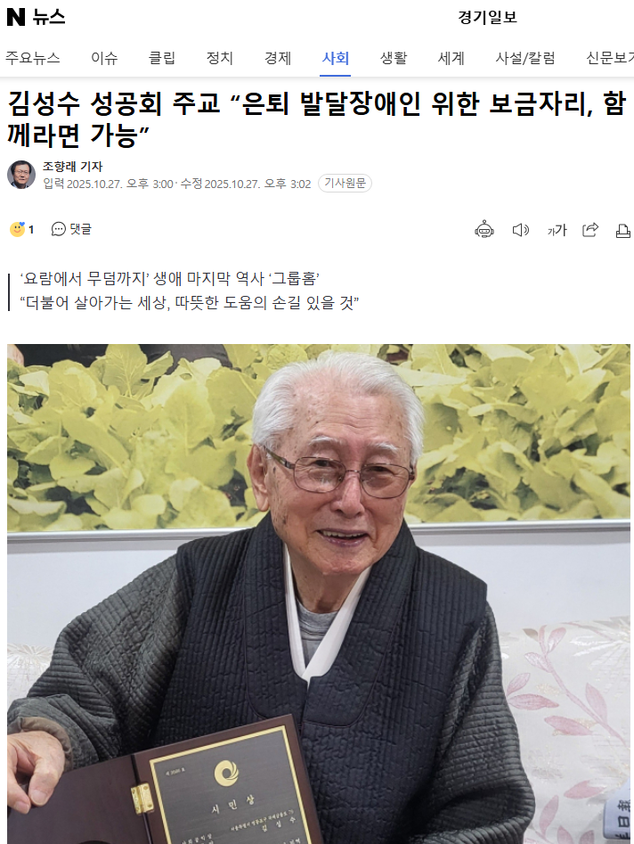 https://n.news.naver.com/article/666/0000086274 김성수 성공회 주교 “은퇴 발달장애인 위한 보금자리, 함께라면 가능”